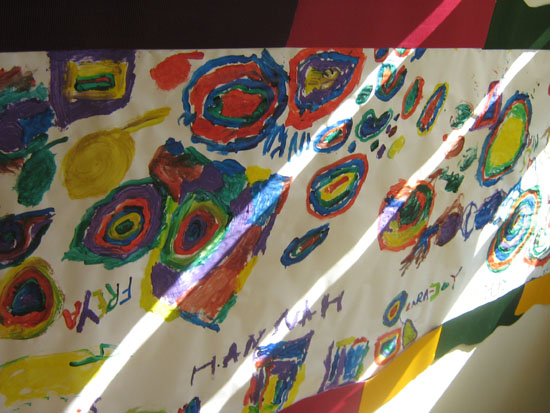 Die 5 und 6-jährigen Kinder der Kiki am Gladeberg haben sich über einen Zeitraum von etwa drei Monaten regelmäßig getroffen, um das Lebenswerk von Friedensreich Hundertwasser zu erforschen. Dabei ging es nicht darum, einzelne Bilder genau unter die Lupe zu nehmen, sondern einen Gesamteindruck zu bekommen.